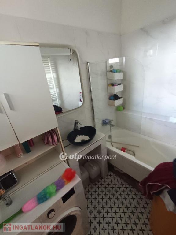 Kedvező rezsivel fenntartható és tehermentes az ingatlan. A társasház 1952-ben épült, 134 lakásos, liftes, négy emeletes, tégla építésű építmény. A lakás kiváló térszerkezetében szobái külön nyílnak, fürdő és a WC külön helyiségben kaptak helyet, vizesblokkokat kerámia burkolatok, szobákat jó állapotú parketta fedi. Előtereit, konyhát járólapokkal burkolt. A bejárati ajtó biztonsági, szobák ablakai nyugati tájolásúak és a konyhának, fürdőszobának is vannak ablakai . Az ingatlan befektetésként volt hasznosítva, jelenleg bérlő már nincs, bár jelentkező van az eladónál. Konyhabútort cserélni kell és a szobák ablakai felújítást ( legalább mázolást ) igényelnek. Jelenleg elektromos radiátorral történik a fűtés. Gáz lenne a lakásban, viszont nincs gázóra beszerelve. A gáztűzhely palackos gázzal működik . A meleg víz ellátást egy új boyler biztosítja, mely éjszakai árammal működik. A villanyáram feltöltős, nempedig előfizetéses. A bent lévő bútorok igény esetén maradhatnak, így a lakás gyakorlatilag apró javításokkal azonnal költözhető.