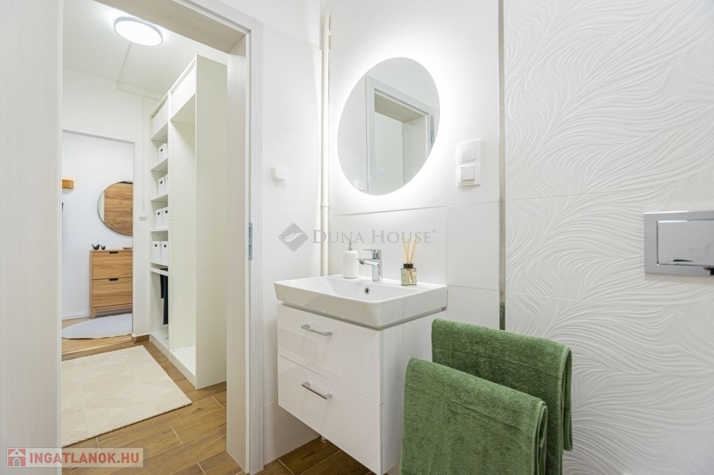 Őrmező legújabb, teljeskörűen felújított lakása eladó első beköltözőnek!Ha olyan otthont keresel, ahol minden vadonatúj, és te lehetsz az első, aki használja, akkor ez a lakás tökéletes választás.A lakás jellemzői:53 m² + 2 m² erkélyNappali + hálószobaKülön konyha vadonatúj, gépesített konyhabútorral (mosogatógép, főzőlap, sütő, elszívó, mikró)Walk-in gardróbKádas fürdőszobaKlíma10. emelet (lift van), felette még egy raktárhelyiség található, így nem zárószint.Teljeskörű, prémium szintű műszaki és esztétikai felújítás új nyílászárók, új burkolatok, teljes villanyvezeték-csereAzonnal költözhetőIgény esetén teljes berendezéssel is elérhetőA környék:Őrmező Budapest egyik legzöldebb és legcsendesebb városrésze, mégis kiváló közlekedéssel.A 4-es metró bejárata mindössze 400 méterre van, a Kelenföldi pályaudvar és az Etele Pláza is gyalogosan elérhető.A ház panelprogramon átesett, tiszta és rendezett, a lakóközösség kulturált.A helyi lakosok számára a parkolás díjmentes, és mindig van szabad hely.Pár perc sétára minden megtalálható: közért, gyógyszertár, orvosi rendelő, iskola, óvoda és játszótér.Ez az ingatlan ritkaság Őrmezőn nem csupán felújított, hanem teljesen új élet kezdésére kész otthon, amelyet eddig még senki sem használt.Lépj be elsőként ebbe a vadonatúj, igényes otthonba!Érdeklődj még ma, és foglalj időpontot a megtekintésre.