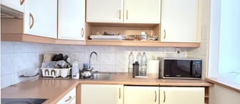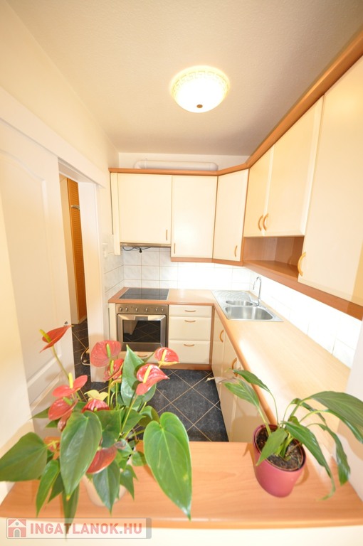 A konyha tágas, jó beosztású, praktikus átadóablakkal a szoba felé, ami igény esetén ablakkal lezárható.