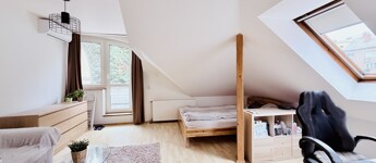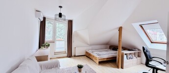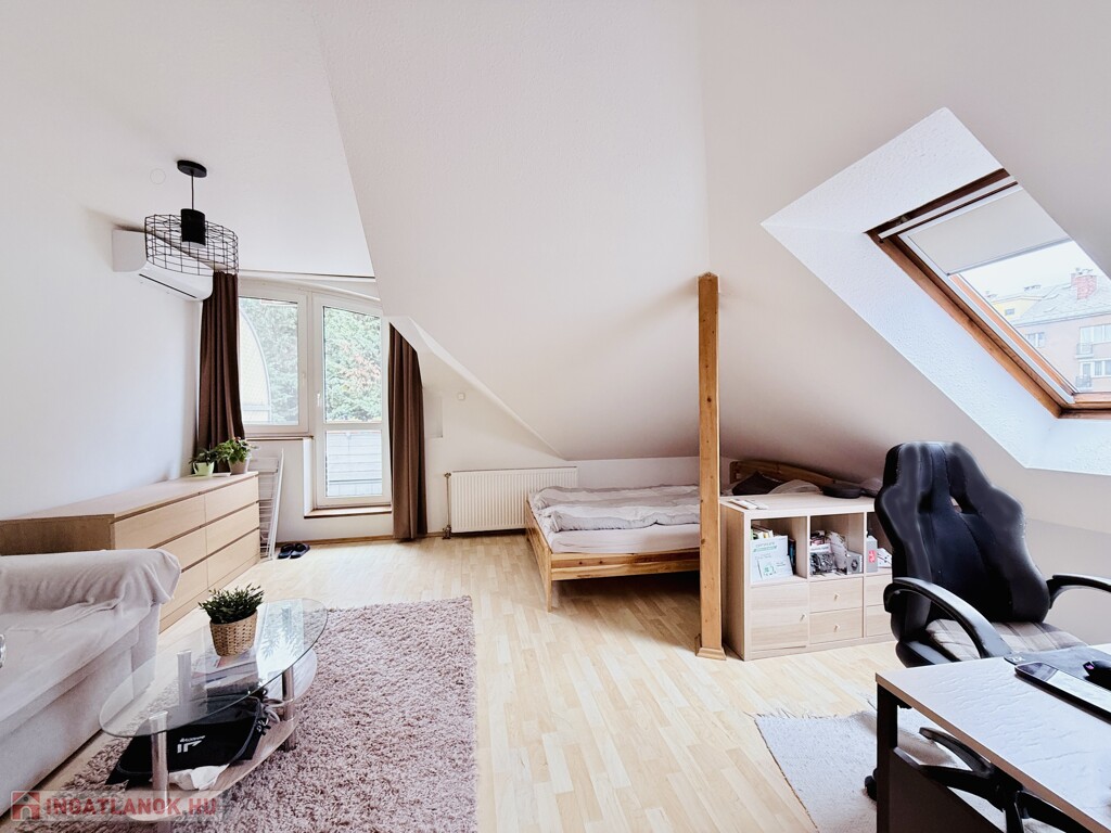 A szoba déli irányban erkélyajtóval és ablakkal, a nyugati irányba tetőtéri ablakkal rendelkezik, így egész nap napos, világos.