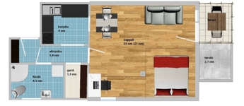 • Alapterület: bruttó 41 m² + 2,5 nm terasz