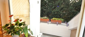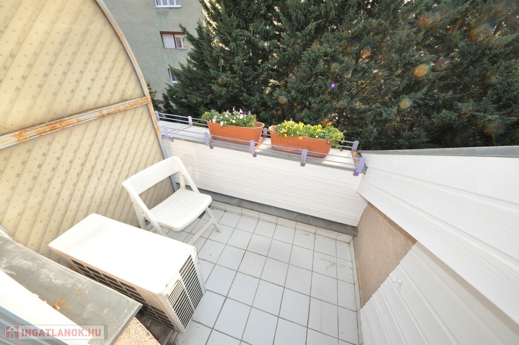 A lakás magas emeleti elhelyezkedésének és kertre néző tájolásának köszönhetően csendes, világos és szép kilátás nyílik a Németvölgy felé, Az erkély intim hangulatú, a zöld kertre néz, napos.