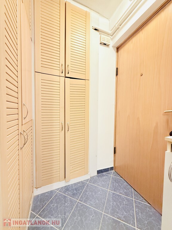 A lakásban beépített szekrény és egy külön gardróbhelyiség is található, valamint egy teraszról megközelíthető külső tároló.