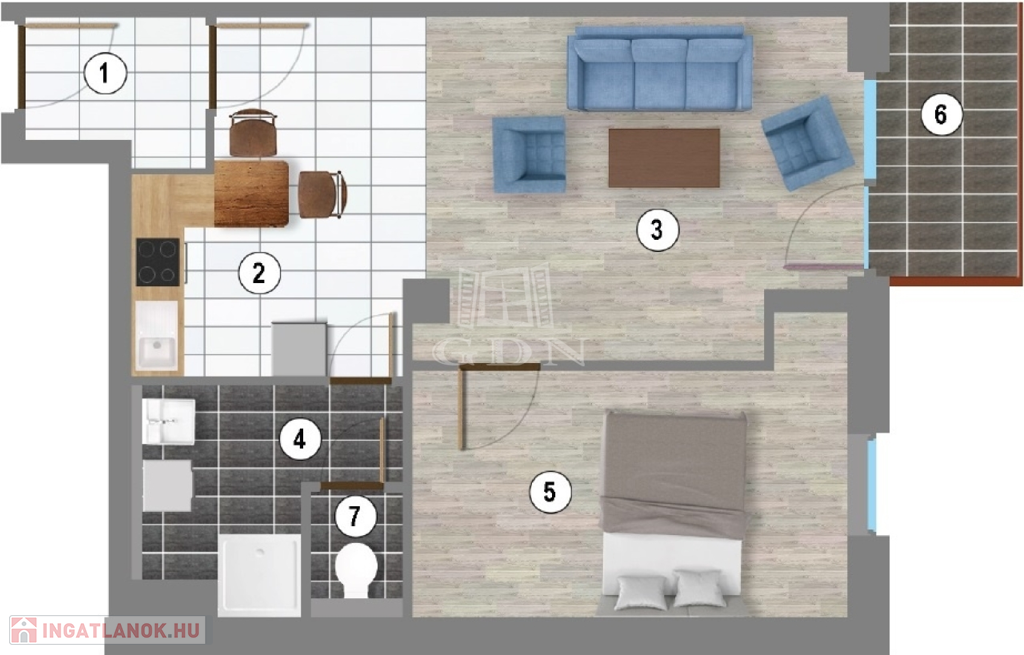 • 4. em.: 2 db lakás