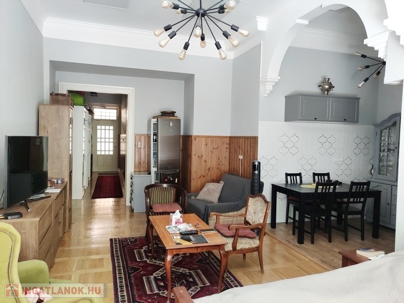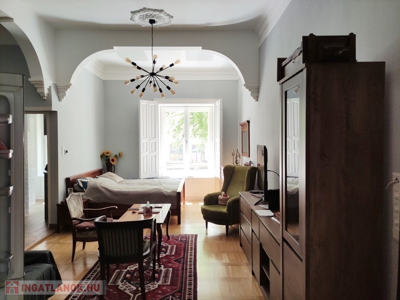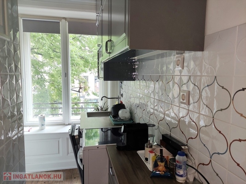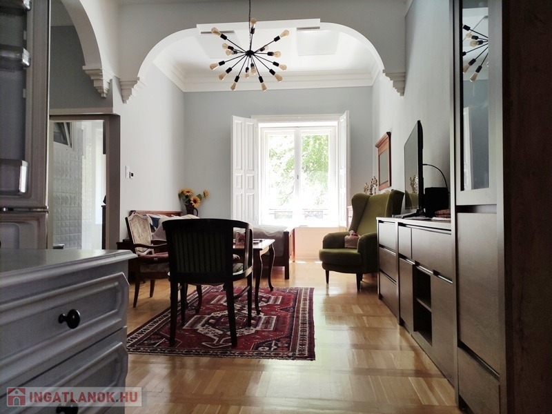 Az ingatlan nemrégiben mindenre kiterjedő felújításon esett át. Az előszoba és a szoba különleges mintázatú, új fa parketta borítást kapott, a többi helyiség fa hatású járólappal burkolt. Az eredeti ablakokat és spalettákat felújították, a négyrétegű thermo üvegezésnek köszönhetően a körút zajából semmi nem érzékelhető. A fűtést a mennyezetre szerelt infra panelek biztosítják, a melegvíz- elllátás villanybojlerrel történik. A belmagasság 3,47 m. A közös költség 12.000 Ft.