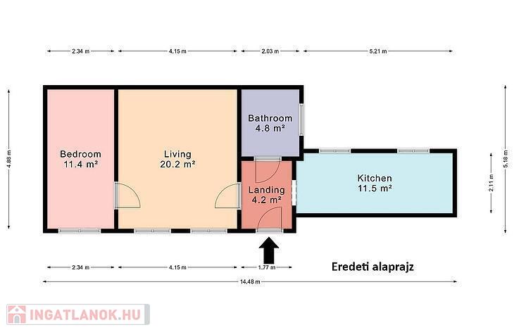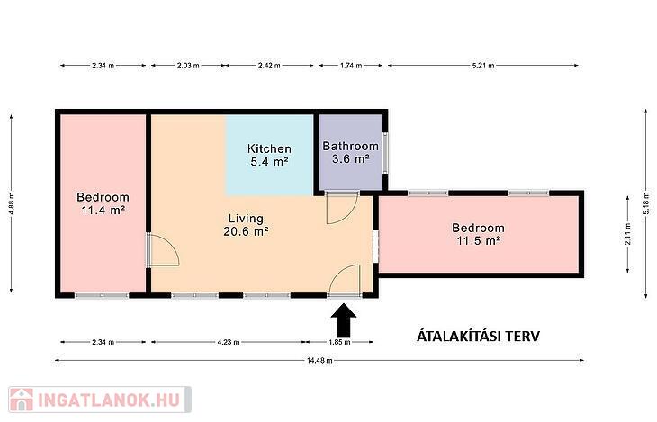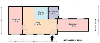 Jelenleg 2 szobás, jól alakítható elrendezés