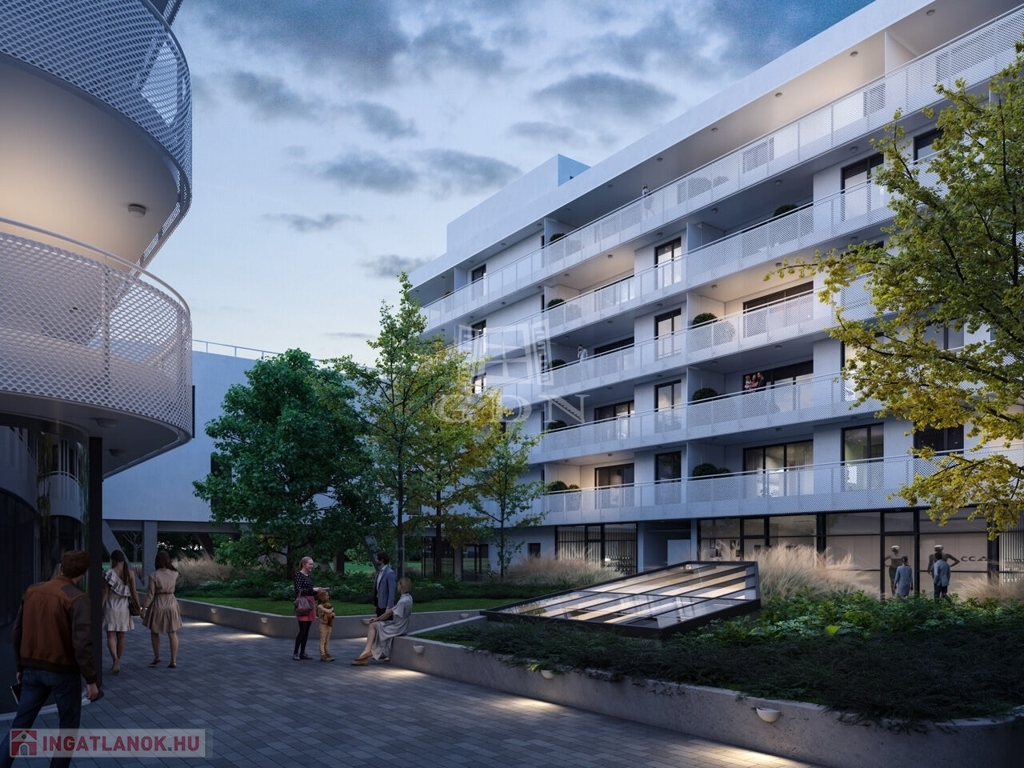 A két épületből álló beruházás során összesen 140 lakás épül, melyek izgalmas vonalvezetésű erkélyei segítik a többlakásos épület harmonikus illeszkedését a ligetes park és a megújult Rákos-patak által létrejövő környezetbe.