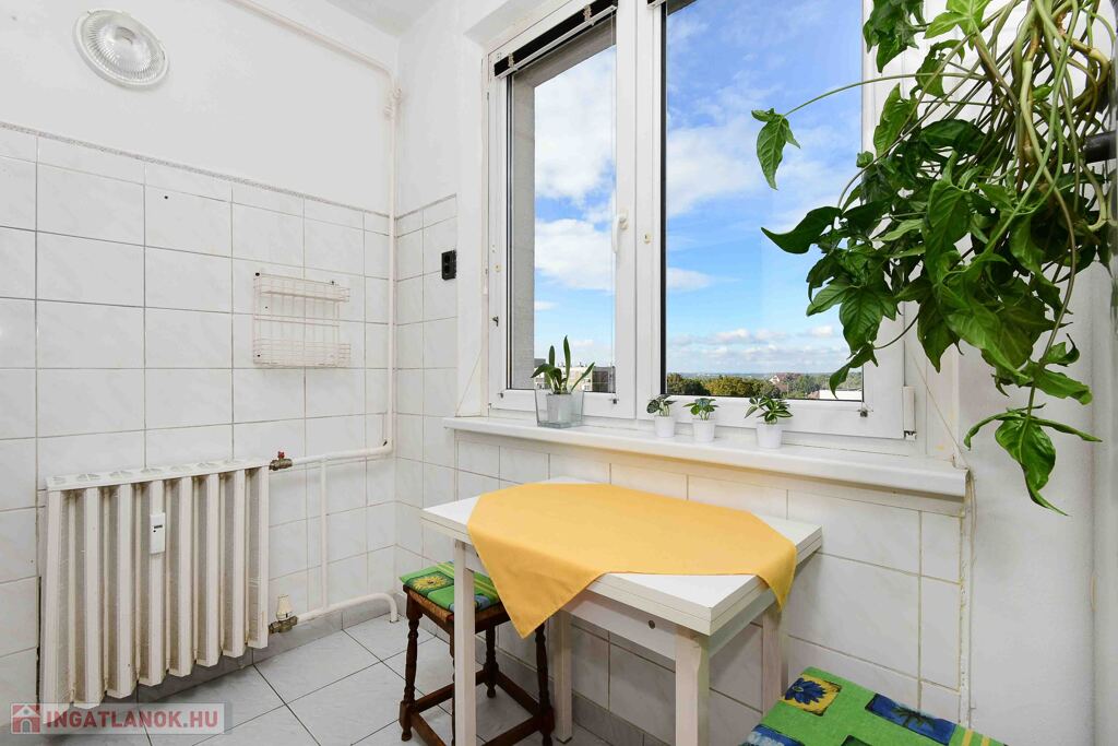 Helle 58 m² große Wohnung mit 2+½ Zimmern steht in der Wohnsiedlung Rózsakert zum Verkauf, umgeben von viel Grün und Parkanlagen. Die Immobilie befindet sich im obersten Stockwerk eines vierstöckigen Genossenschaftsgebäudes, das am Panel-Programm teilgenommen hat.
