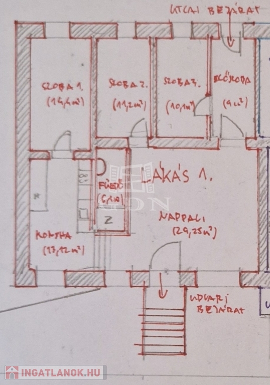 Nappali + 2 fél szoba + 1 egész szoba – praktikus, élhető terek.