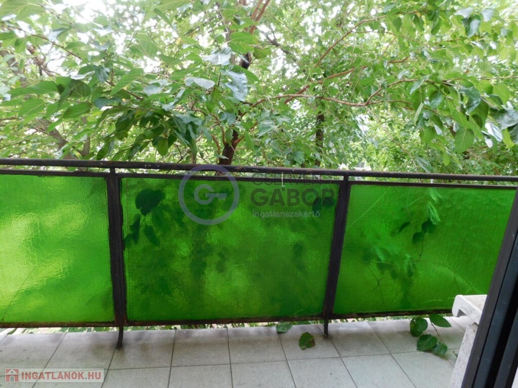 A nagyobbik szobához tartozik egy méretes erkély, pontosabban lodzsa, amit a szomszédos fák lombozata a nyári forrónapokon is szépen beárnyékol.