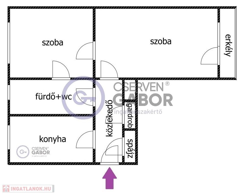 A lakás alapterülete 55 m2, ami magába foglal két szobát, egy kényelmes méretű konyhát, egy spájzot és egy gardróbot, valamint egy fürdőt, ami egyben van a WC-vel. Kiemelendő dolog, hogy a fürdőn nagyméretű ablak van, így a mellett, hogy természetes fénnyel rendelkezik, a szellőztetése is könnyedén megoldott.