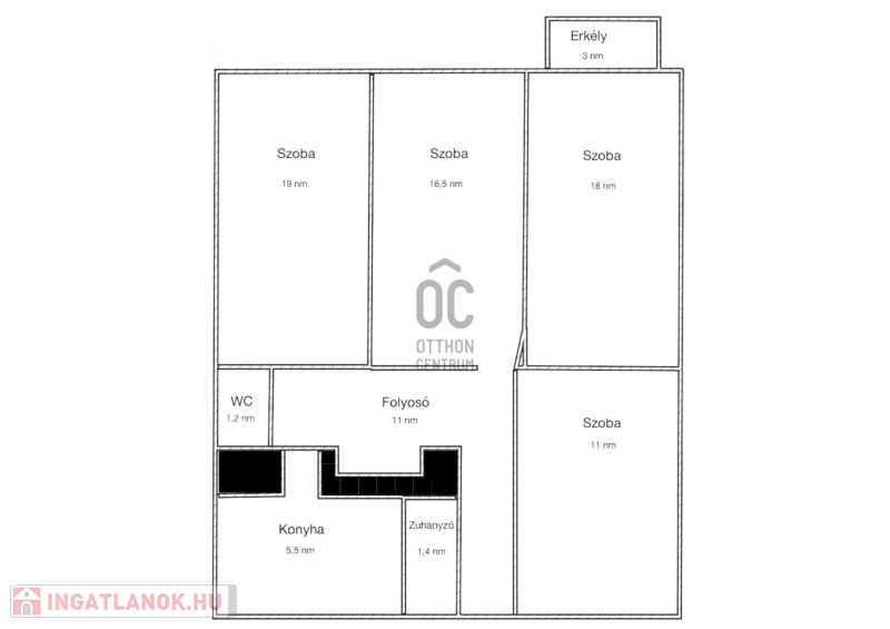 A lakás elrendezése ideális akár otthonnak, akár irodának, hiszen a szobák külön bejáratúak és jól alakíthatók.