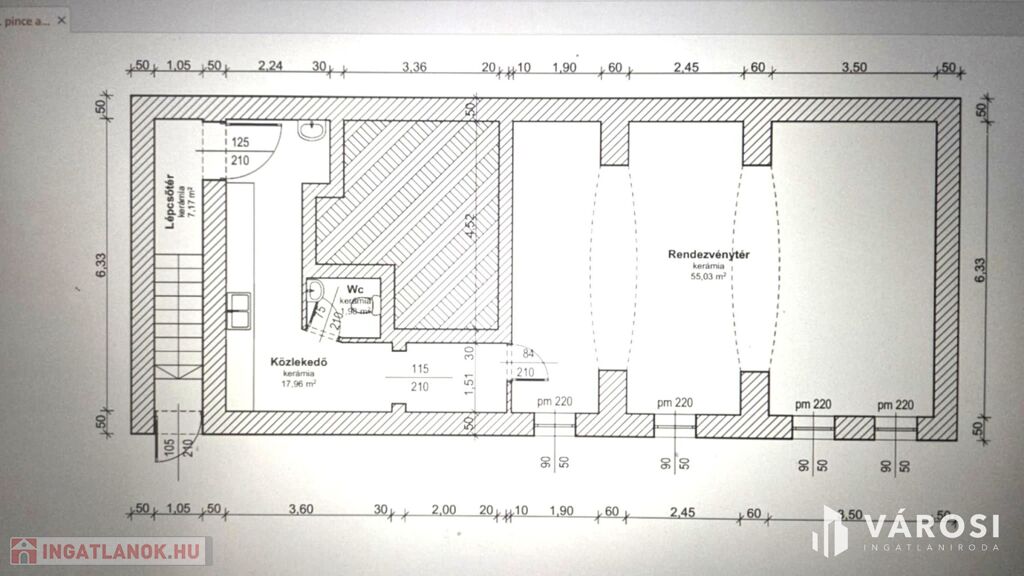 -Pince: 84 m² , eredetileg rendezvénytérnek tervezett helyiség (jelenleg más funkcióval használva)
