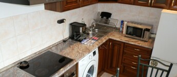 A távfűtéses ingatlan, jó minőségű konyhabútorral van szerelve, amelyben még a mosógép is helyet kapott.