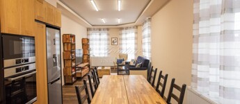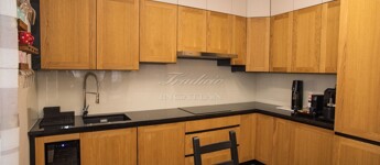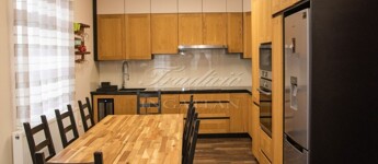 • Konyha: prémium VINYL burkolat, tömörfa konyhabútor, fekete gránit munkalap, lacobel üveg hátfal, beépített Bosch gépek, borhűtő, GREE inverteres klíma.