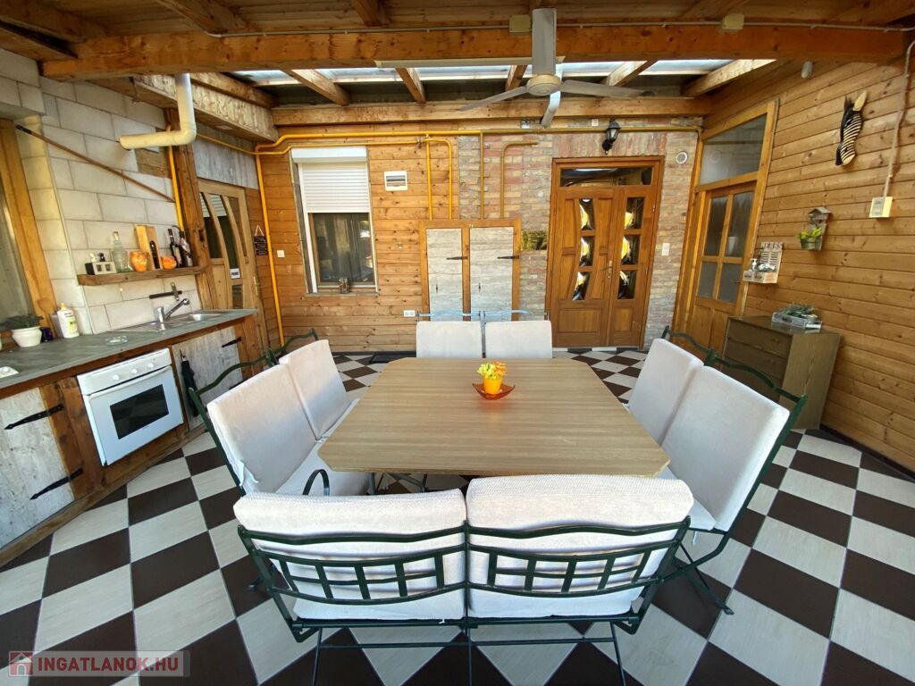 A lakás egy zárható 30 m2-es fedett teraszról nyílik, ahol egy nyári konyha teljes felszereltséggel került kialakításra. Ez a terasz közös a mellette lévő lakással ezért praktikus egy család számára.
