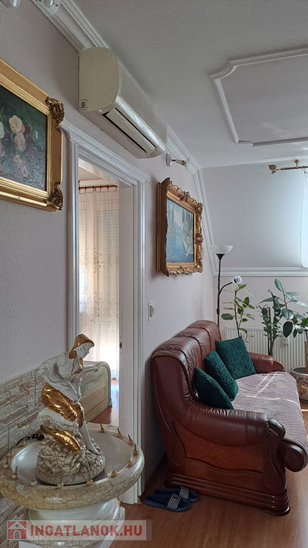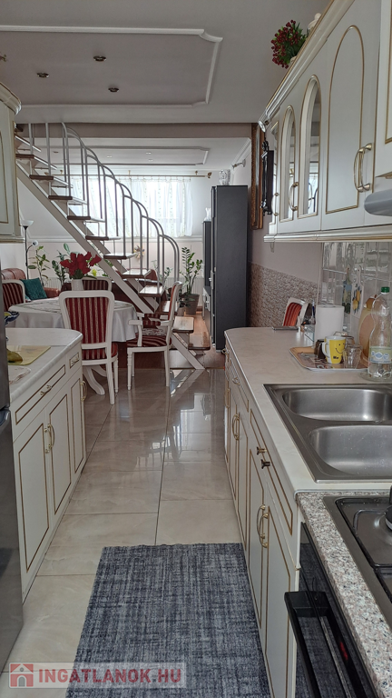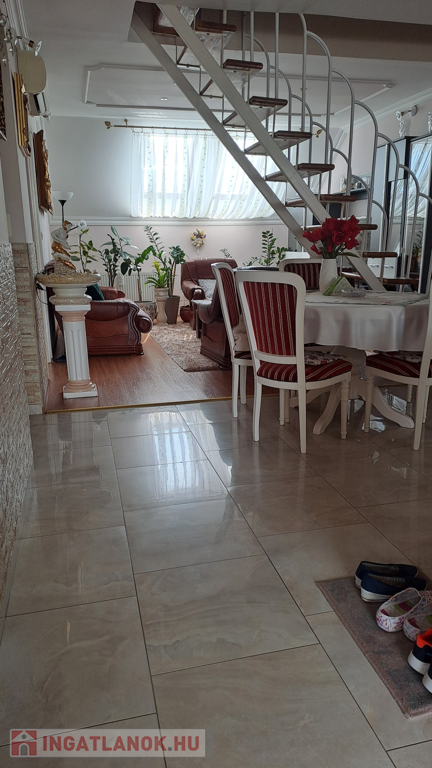 belső szintes,egyedi gázfűtéses,klimatizált,redőnnyel felszerelt műanyag nyílászárós,egyedi, beépített, gépesített konyhás,járólap és laminált padló burkolatú,