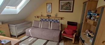 Alsó szint: nappali, konyha, fürdőszoba, 1 szoba
