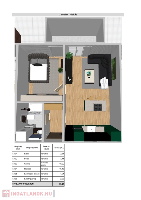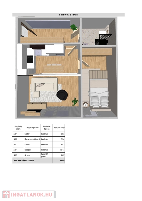1. em. 43,44 nm (5,7 nm erkély) N+1 szoba Ár: 40,59 M Ft