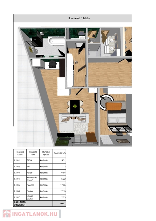 2. em. 52,8 nm (4,46 nm loggia) N+1 szoba Ár: 50,57 M Ft