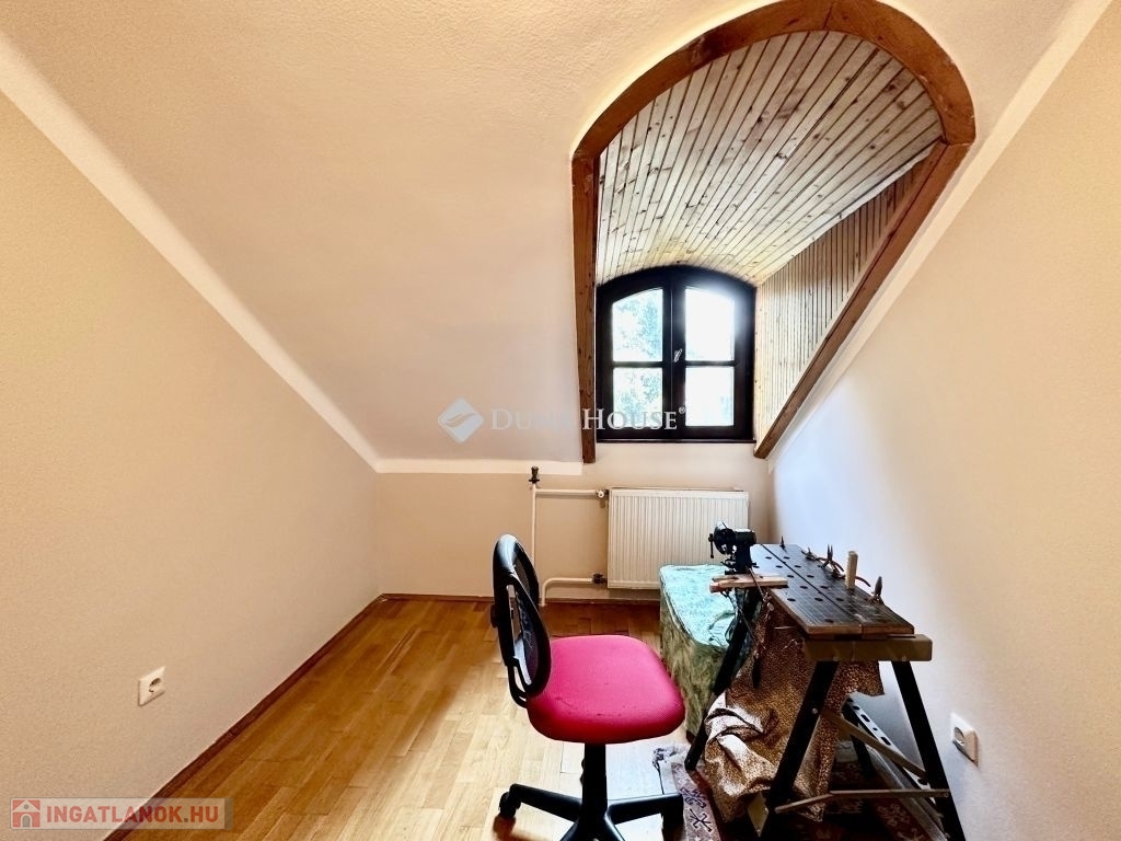 Eladó Pécs történelmi belvárosában, Nagy Flórián utcában két hálós galériás lakás kertkapcsolattal. Az ingatlan négy lakásos társasházban a belső és szélső oldalon helyezkedik el. A lakáshoz az utcafronti közös bejáraton és zárt folyosón keresztül, a zárt zöld füves és virágos mediterrán udvaron át jutunk be.61 m²-es, galériás és kertkapcsolaton kívül még tárolóval rendelkezik.A földszinten előszoba, fürdőszoba, konyha és tágas nappali, melyben a stabil tölgyfa csigalépcsőn keresztül az emeletre érve két szoba, a galérián beépített tároló szekrény található. A helyiségek közül a nappaliban és a szobákban meleg burkolat, a többiben pedig hideg burkolat van. A lakás gázfűtéses.A társasházban élő lakástulajdonosok mind régóta élnek itt, nem cserélődtek, szeretnek itt lakni. Az ingatlan igazi értékét a műemlék épület, a mediterrán kert kapcsolat és a galériás kialakítás adja.A ház előtt közvetlenül lehet parkolni engedéllyel, vagy bérlettel.A lakás alacsony rezsi költségű melyet közös költség nem terhel.Fiatalok vagy fiatal családok számára ideális lakhatást tud biztosítani az egyedi igények szerint elvégzendő felújításokkal.
