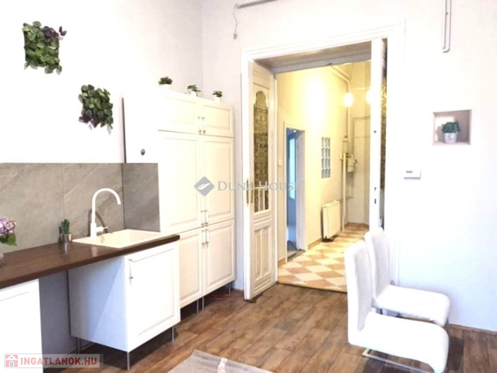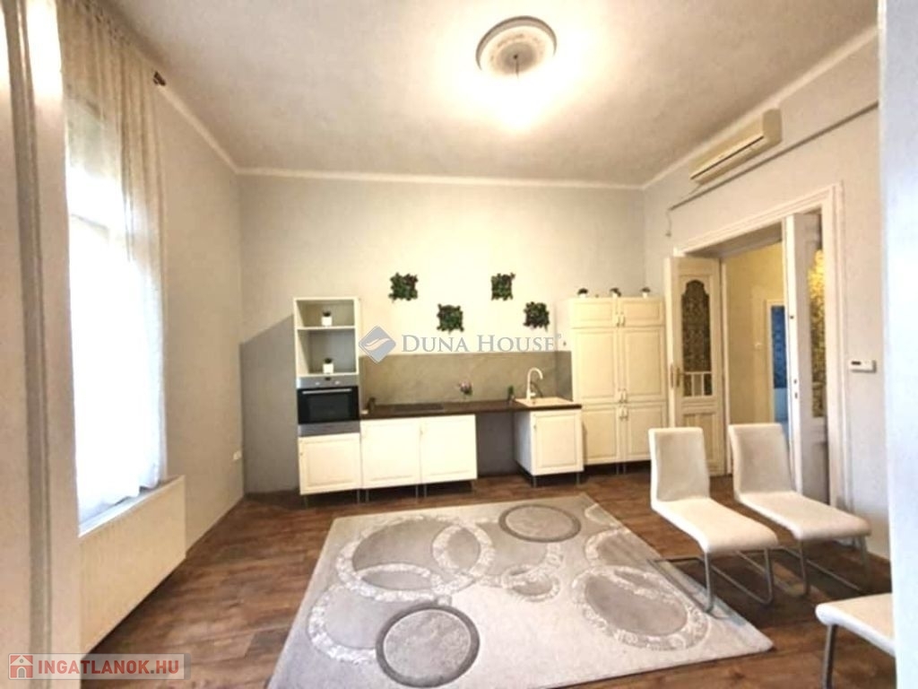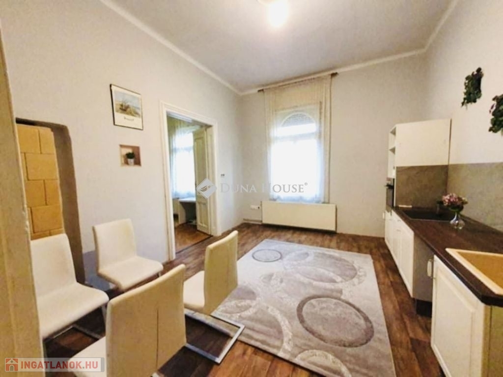 Eladó Pécsett a Rákóczi úton egy 2. emeleti, 2 szobás, nappali+konyha-étkezős, belvárosi lakás, teljes bútorzattal, bérlővel együtt.
