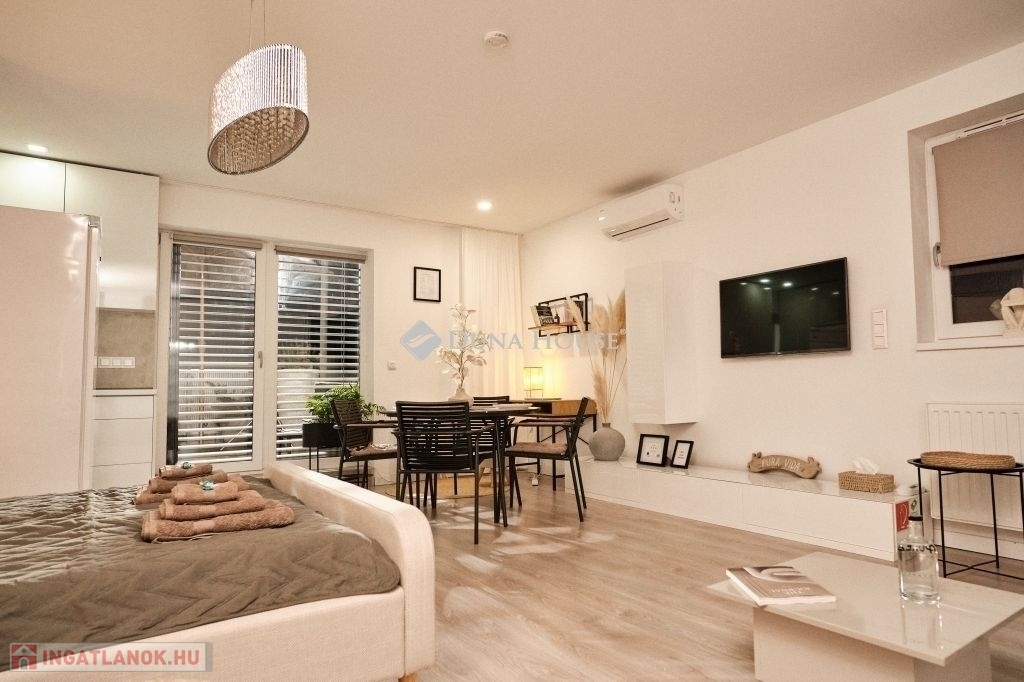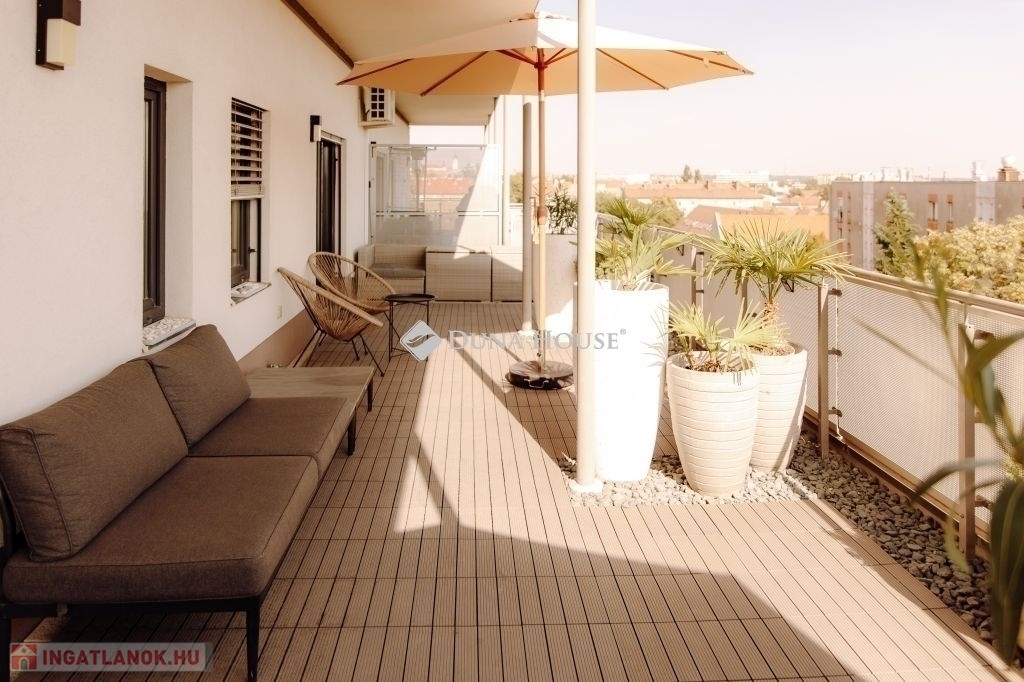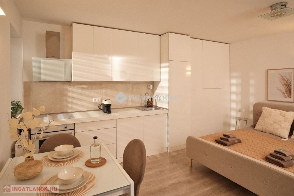 PRÉMIUM PENTHOUSE LAKÁS ELADÓ PÉCS BELVÁROSÁHOZ KÖZEL KÉT KÜLÖN LAKÁSSAL, TELJES BERENDEZÉSSEL, AZONNALI HOZAMMAL!Pécsett, a belvárostól mindössze pár perc sétára, a 2017-ben átadott Megyer Ház lakópark 4. emeletén kínálunk megvételre egy 70 m²-es, tehermentes penthouse lakást, amelyet két különálló lakássá alakítottak.Az ingatlanhoz nagyméretű fedett terasz is tartozik (30 m² és 20 m²), melyek mindkét nappaliból közvetlenül megközelíthetők.--KIEMELT ELŐNYÖK:Jelenleg mindkét lakás bérbe adva, teljes kihasználtsággalAzonnali, stabil és rendkívüli hozamA teljes berendezés a vételár részét képezi az ingatlan azonnal tovább üzemeltethetőKét külön bejáratú, önálló lakás maximális kihasználhatóság--Főbb jellemzők:Mindkét lakás: amerikai konyhás nappali + fürdőszoba WC-vel + teraszPrémium minőségű kivitelezés, letisztult designEmelt szintű, gépesített konyhákElektromos zsalúziaNagyteljesítményű klímák minden helyiségben (hűtés-fűtés)Távfűtés egyedi mérésselAlacsony fenntartási költség1 db utcai felszíni parkoló tartozik a lakáshoz2 további parkoló vásárolható-Lokáció:Belváros közeli, exkluzív környezetKiváló közlekedés minden iránybaVilágos, napfényes lakás egész nap--Befektetők figyelem!Az ingatlan jelenlegi működése és kialakítása révén azonnal bevételt termel, így ideális választás azok számára, akik kockázatmentes, kész befektetést keresnek Pécs egyik legkeresettebb lokációjában.További információért és megtekintésért várom hívását!