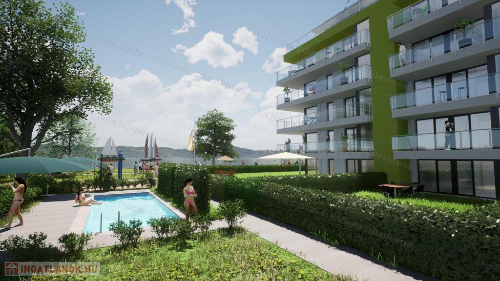 Siófok hangulatos, panorámás részén kerül megvalósításra ez a közvetlen vízparti 100 lakásos, újépítésű társasház.
