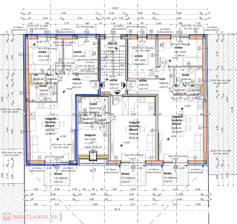 - 15 cm EPS hőszigetelés
