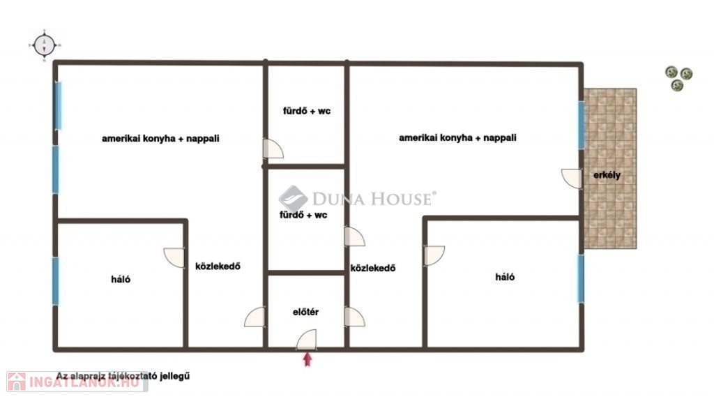 - balra az utcára néző: amerikai konyha+nappali, háló, fürdő, közlekedő - 35,64 m2