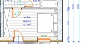 Elrendezés: amerikai konyhás nappali + 1 hálószoba