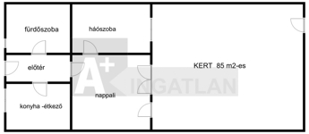 A lakás elrendezését tekintve : közös , zárt , átriumos udvarból nyílik , előszoba , jobbra megfelelő méretű , étkező -konyha , balra , tágas fürdőszoba -wc-vel , majd a napfényes csupa ablak nappali és igazi kuriózum 85 m2-es kertkapcsolat és nappaliból nyílik a hálószoba is.