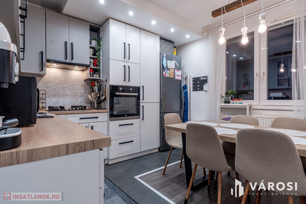 Szeged Kossuth Lajos városrészében, a Kossuth Lajos sugárúton eladó, egy 1989 - ben épült NEGYEDIKEMELETI, TELJESEN (Totál) FELÚJÍTOTT 68 nm - es, panel építésű, nappalival, és kettő szobával, étkező konyhával, rendelkező lakás.