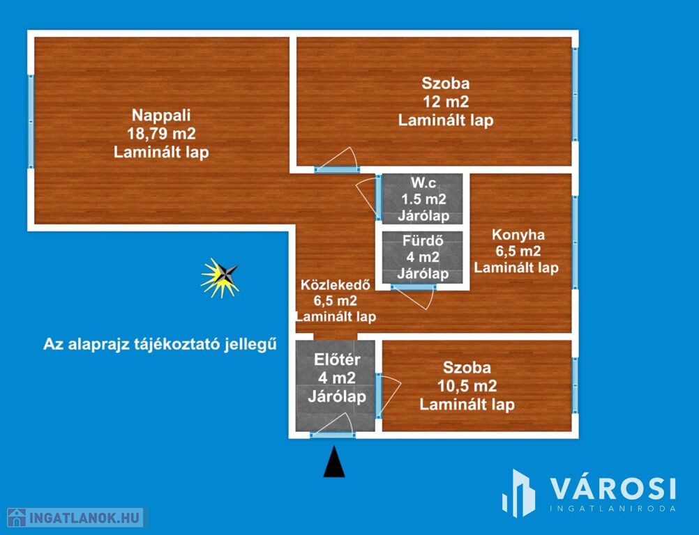 A lakás 1 db nappalival, 2 db hálószobával, 1 db fürdőszobával, külön Wc-vel, közlekedővel, előtéttel rendelkezik. Az ingatlan elhelyezkedésre, kialakítása miatt rendkívül sokrétű a felhasználása - akár lakás, vagy befektetési célra -, amely maximálisan kiemeli ezt az ingatlant az átlagos lakások sorából és egyedülálló választássá teszi azt.