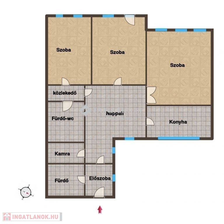 A lakásban jelenleg 3 nagy méretű szoba található, plusz egy tágas hall rész, melyre méretéből adódóan akár nappaliként is tekinthetünk.