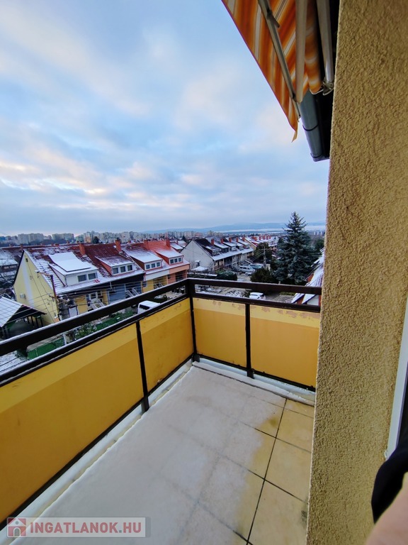 A szobából nyílik a napellenzővel ellátott erkély, amely nyugati fekvésének köszönhetően a délutáni órákban napfényes.
