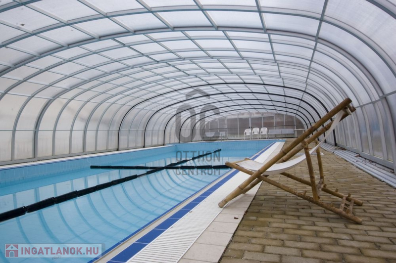 és a csodálatosan gondozott kertben feszített víztükrű medence (8X16m).