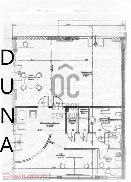 Földszinti , 2 fürdő/WC.-s , nagy egylégterű akár 50nm helység ( mely akár szeparálhatóa beépített válaszfallal igény szerint ) amely 400 cm (!) belmagasságú , akadálymentes, közvetlen bejárat a Duna felől és a lakóparkból is.