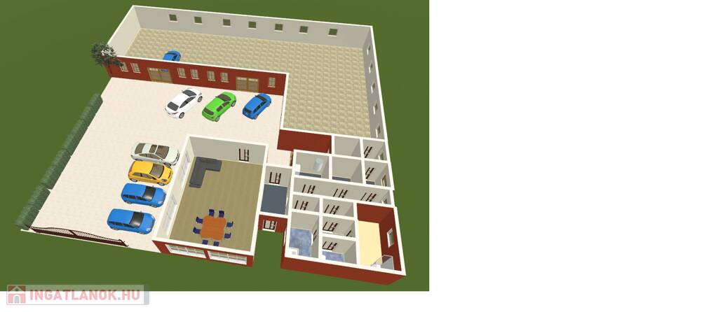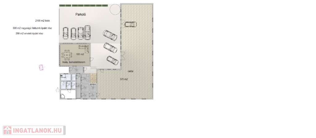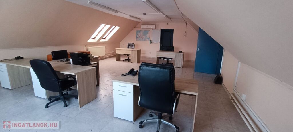 Az emeleten 2 iroda ( 60 m2 és 75 m2) is kiadó, ahol mosdó és egy konyha külön található.