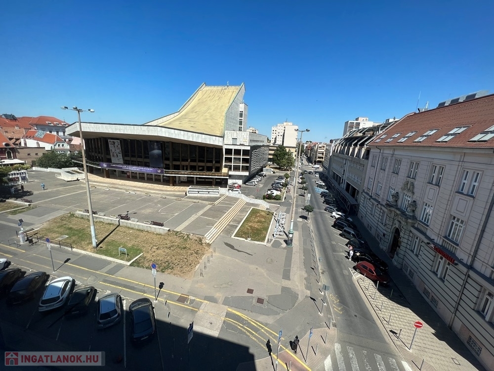 Győr-Belvárosának szívében, Baross úttól, Széchenyi tértől pár másodperces sétatávolságra, rendezett, tiszta irodaház 4. emeletén, nagy üvegfelülettel rendelkező, 18 m2-es bútorozatlan iroda, NEMZETI SZÍNHÁZRA való kilátással, közös tárgyaló használatának lehetőségével kiadó.