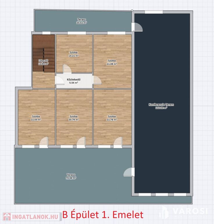 A telek jelenlegi 95%-os beépítettsége minden kerületi szabályozásnak megfelel így akár megfelelő módosításokkal társasházzá is átminősíthető.