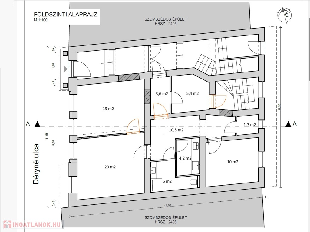 Az ingatlan Miskolc egyik legszebb belvárosi utcájában, a Déryné utcában helyezkedik el.