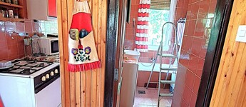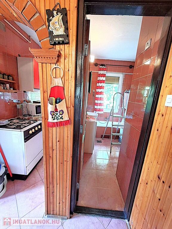 1,5 szobás, konyha, fürdő, wc, gázkonvektor fűtés, 25 m2-es terasz.