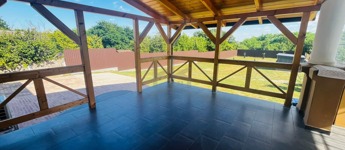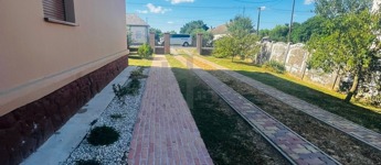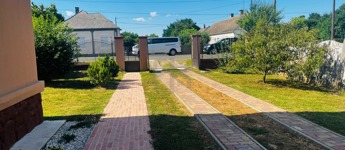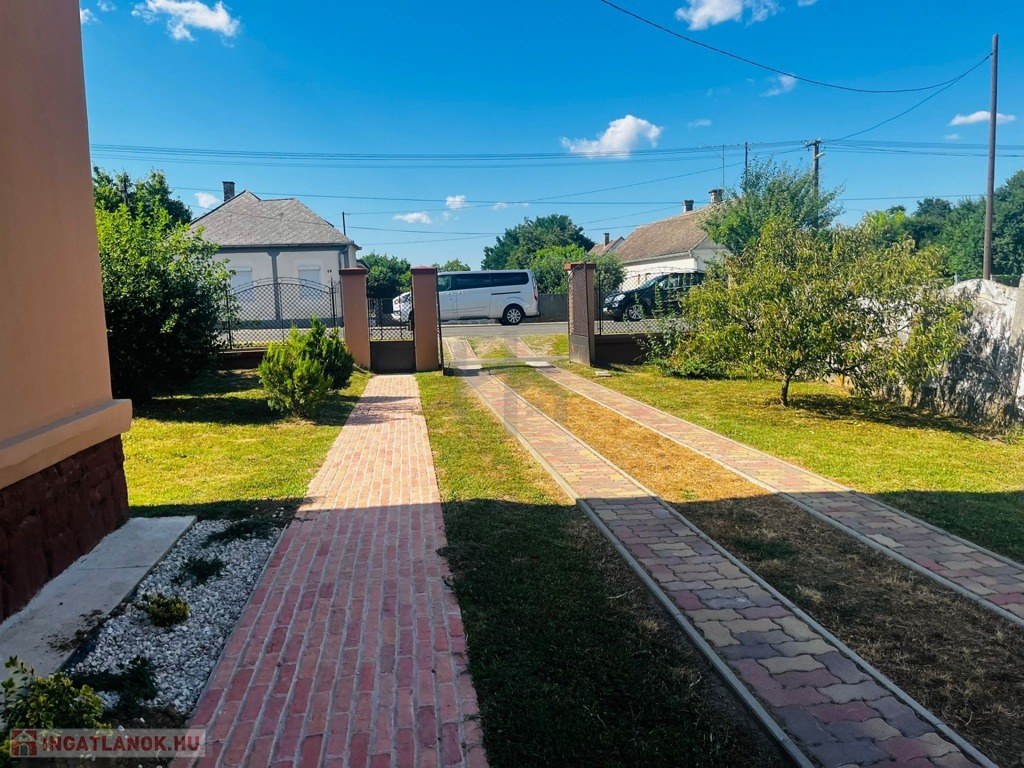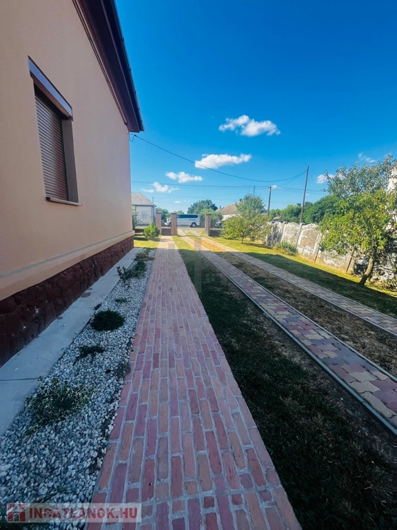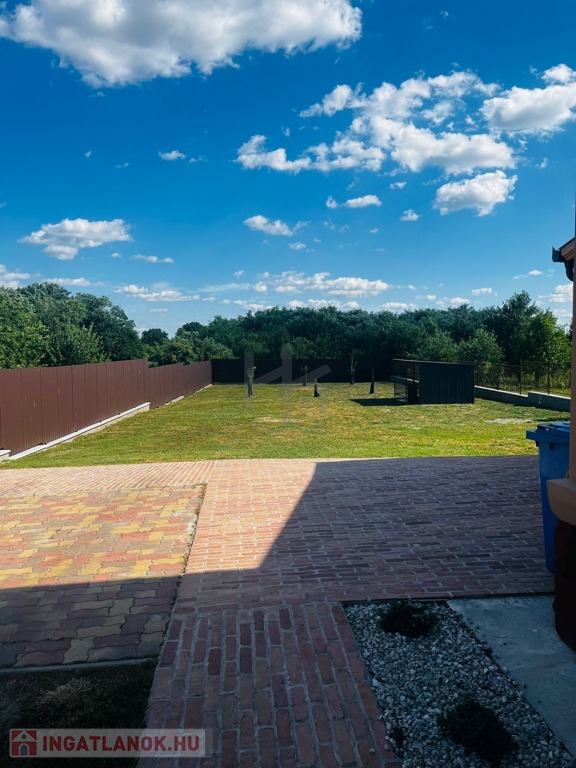 A 2242 m2-es telken új facsemeték, térkövezett kocsibeálló, körbekerített udvar, valamint egy 5x3 m-es kutyakennel található.