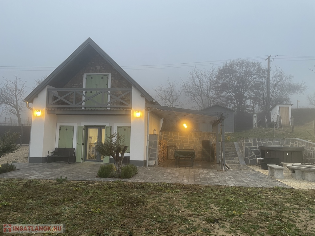 Balatonakali hegyoldalában, a Fenye-hegyen kínálom megvételre ezt a 2025-ben teljeskörűen felújított, egykori présházból kialakított, újszerű nyaralót, amely a hagyományos kőépítészet időtálló karakterét ötvözi a modern komforttal. A 2500 m²-es telek páratlan értékét az örökpanorámás kilátás biztosítja a Balaton teljes nyugati medencéjére, párosulva zavartalan csenddel és természetközeli életérzéssel.