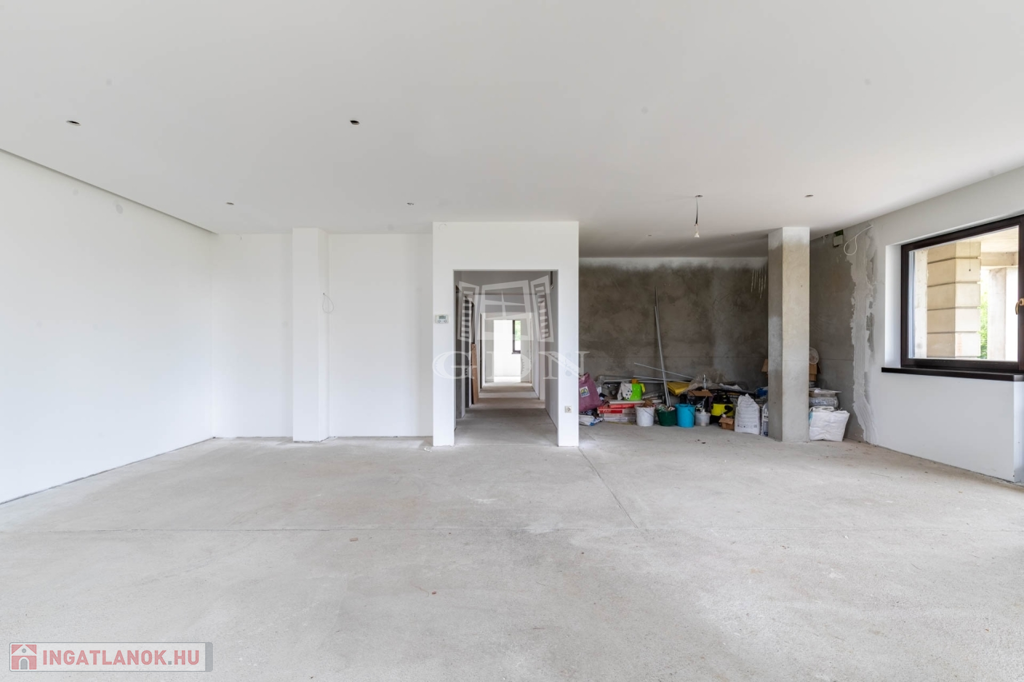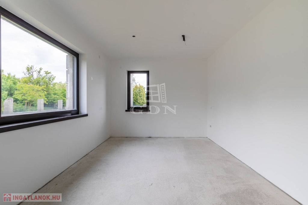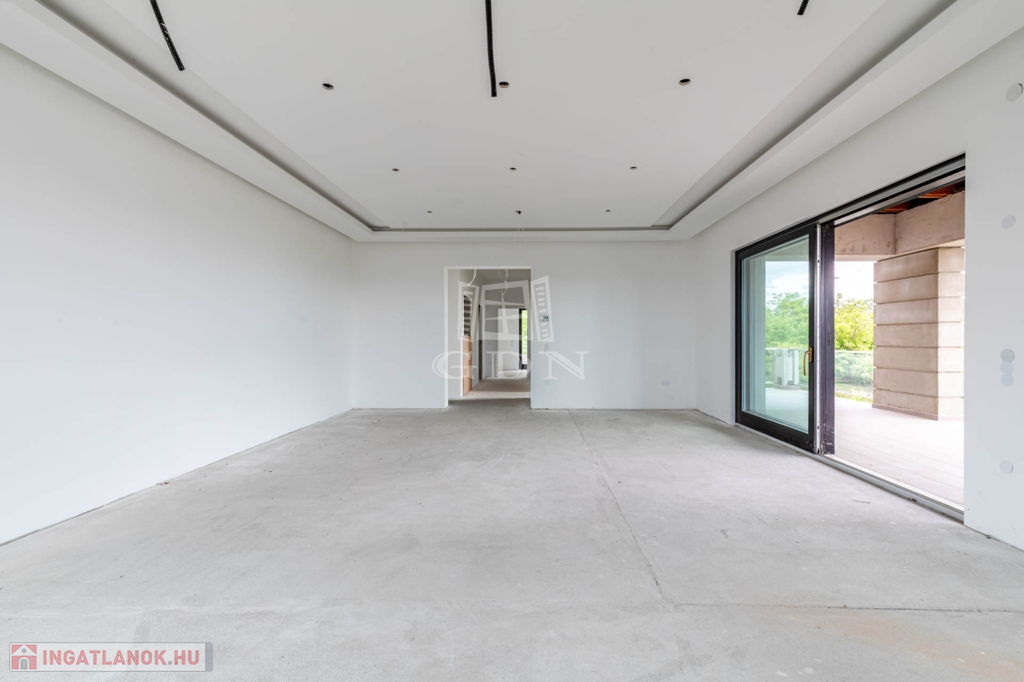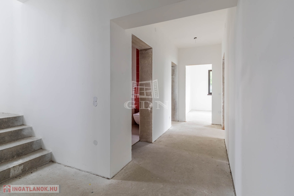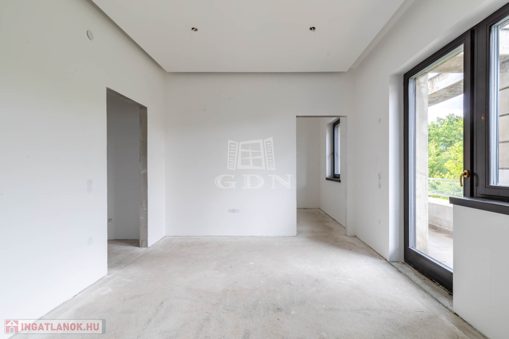 A 112 nm-es nettó alapterületű emeleten 1 nappali (kandalló előkészítéssel), 3 szoba, 2 fürdőszoba, valamint 101 nm-es részben fedett és pergolás körpanorámás terasszal.