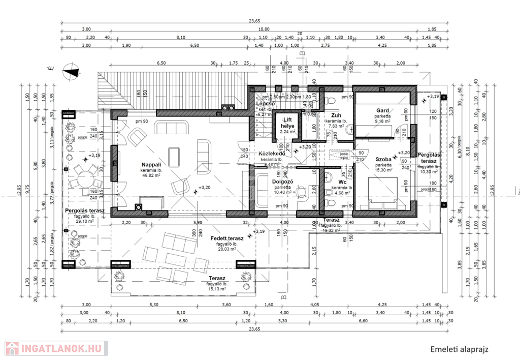 - Emelet: 112 m2 + 101 m2 terasz
