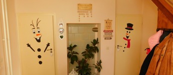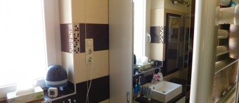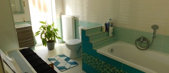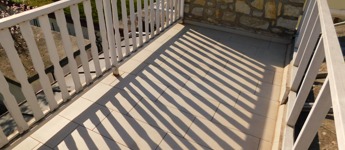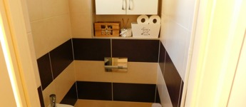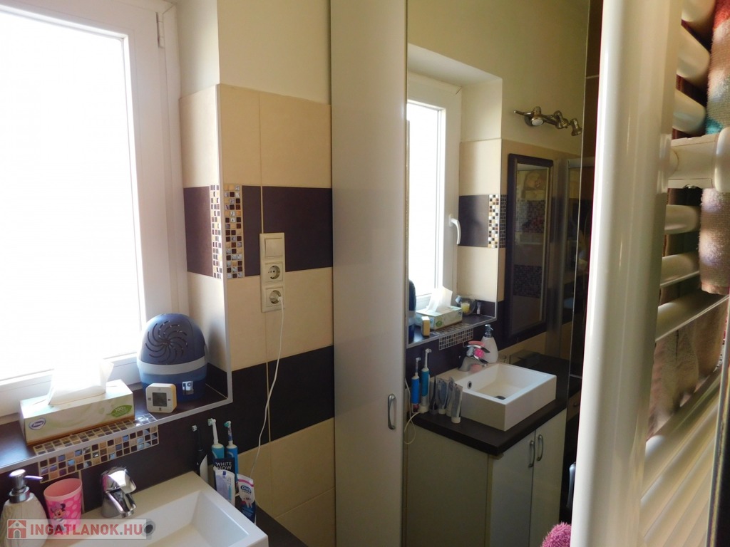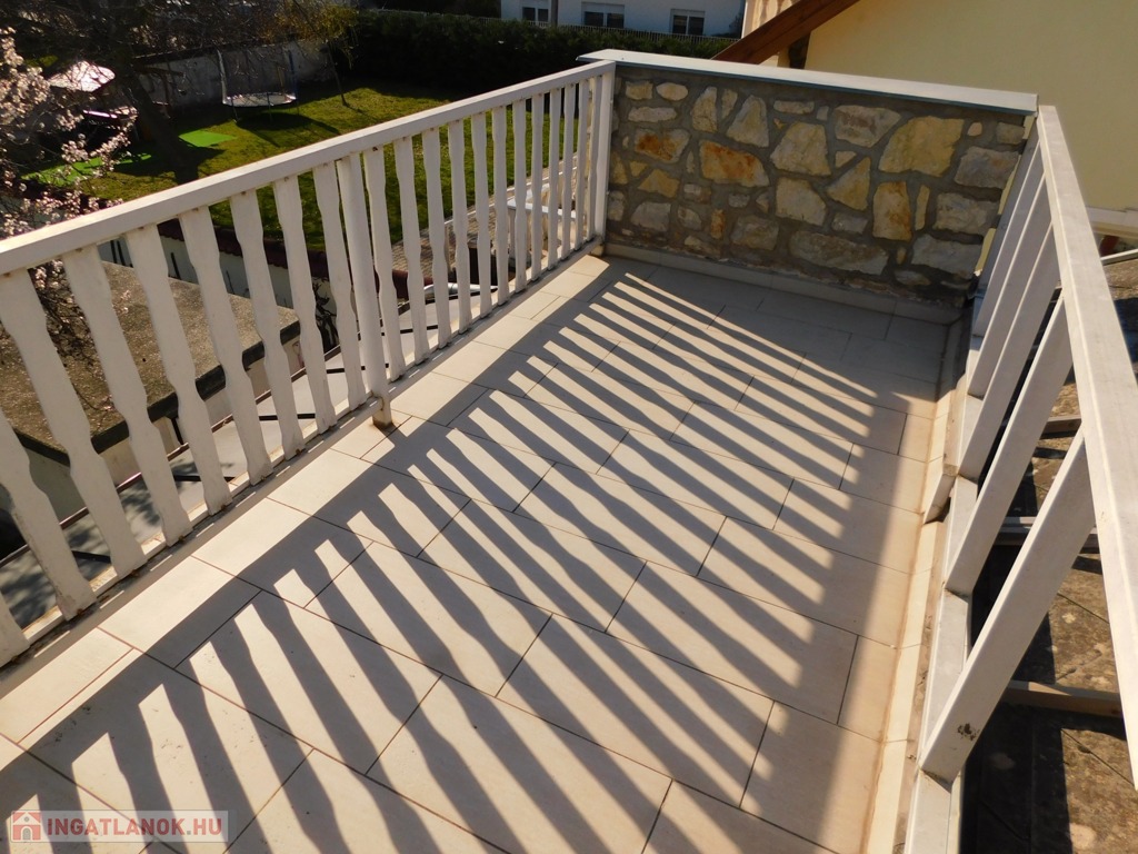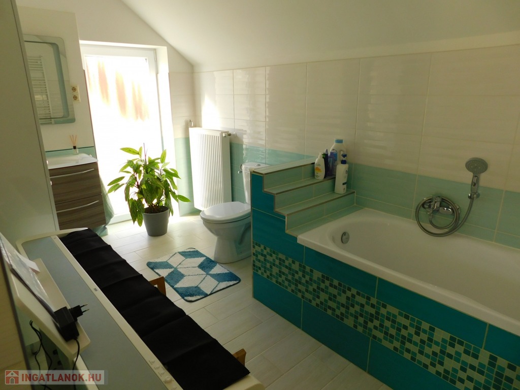 A tetőtérbe az előszobából egy felújított mahagóni falépcsőn jutunk fel. Itt kapott helyet egy fürdőszoba, melynek erkélyéről gyönyörű kilátás nyílik a Tamás-hegyre. A fürdő padlózata programozható elektromos fűtéssel van ellátva, és a meleg vizet egy külön 80 literes villanybojler biztosítja.