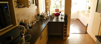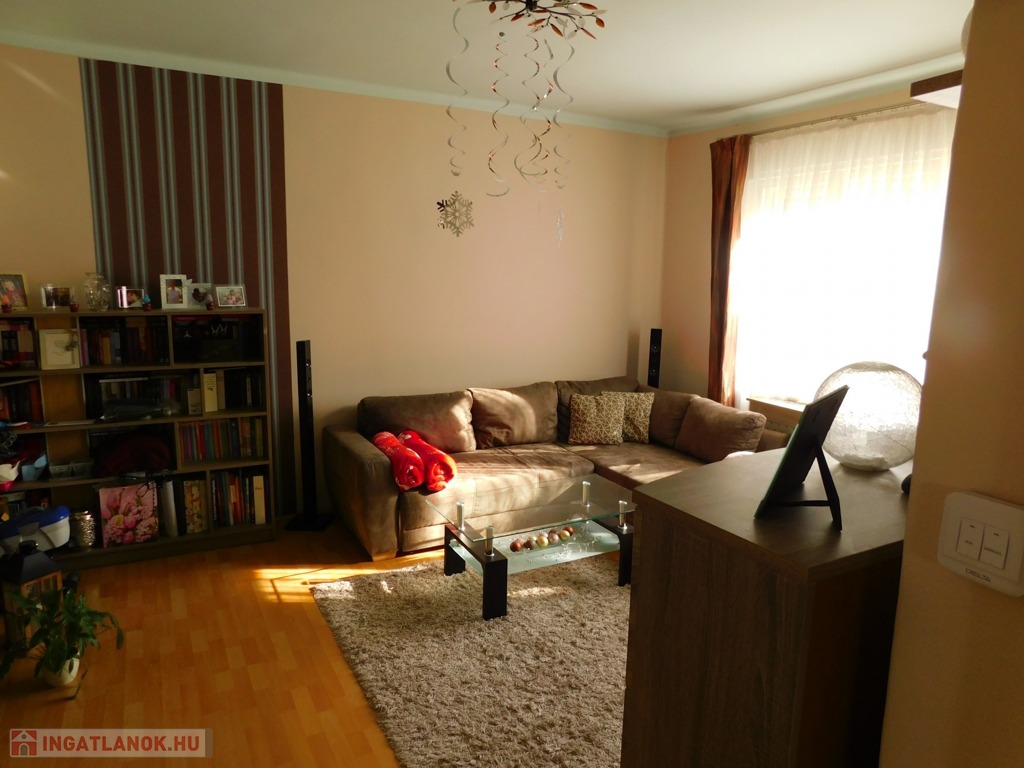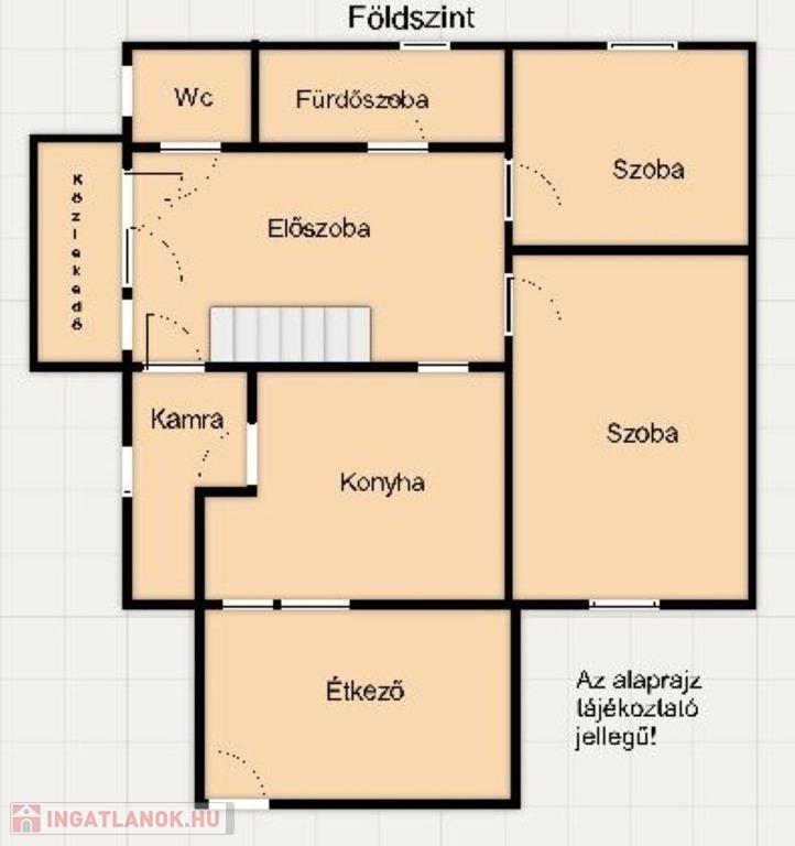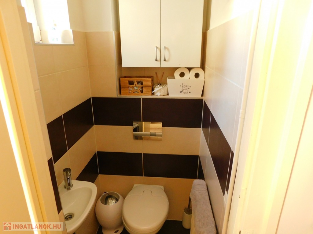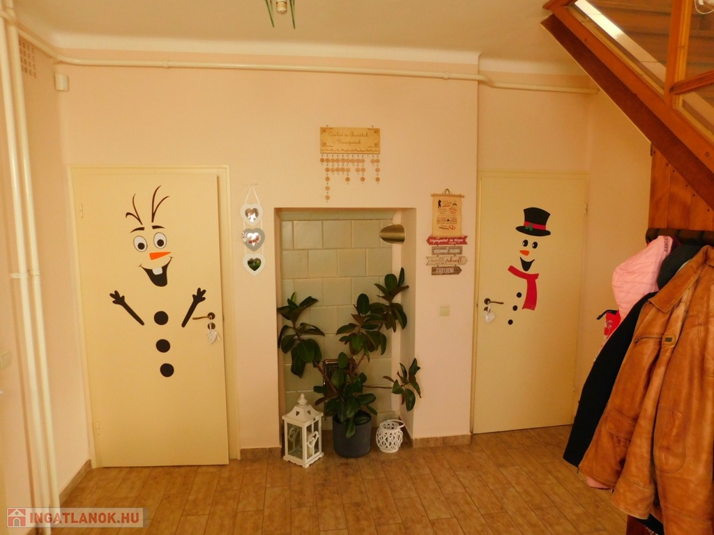 A földszinten található tágas előszobából nyílik a konyha-étkező, két szoba, a tusolós fürdőszoba és a wc. Az előszobát és a két szobát a hangulatos cserépkályha köti össze.