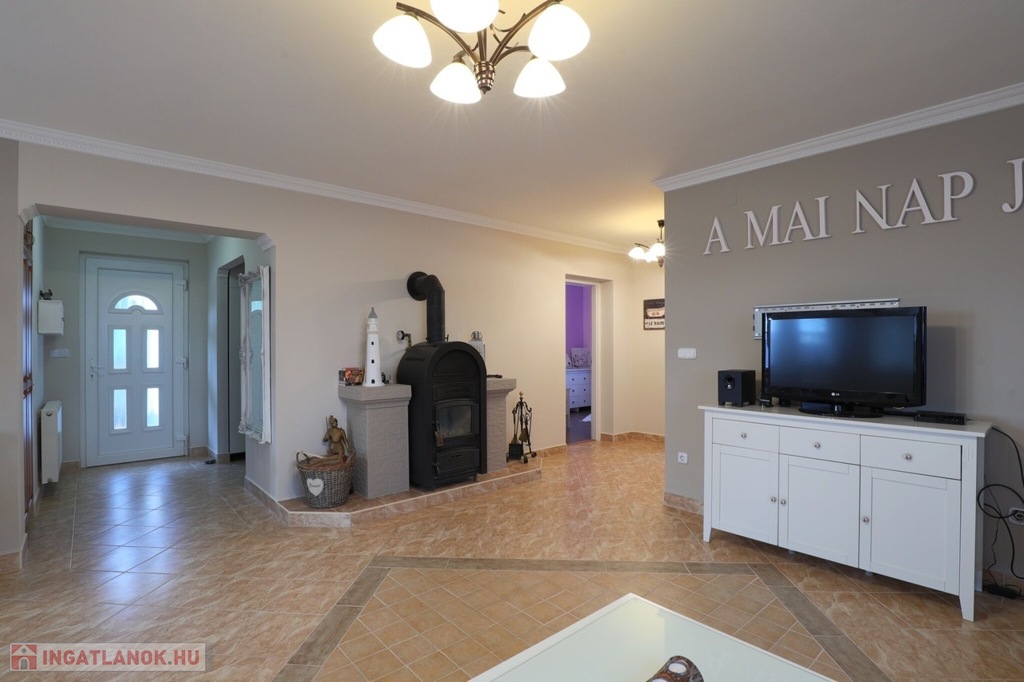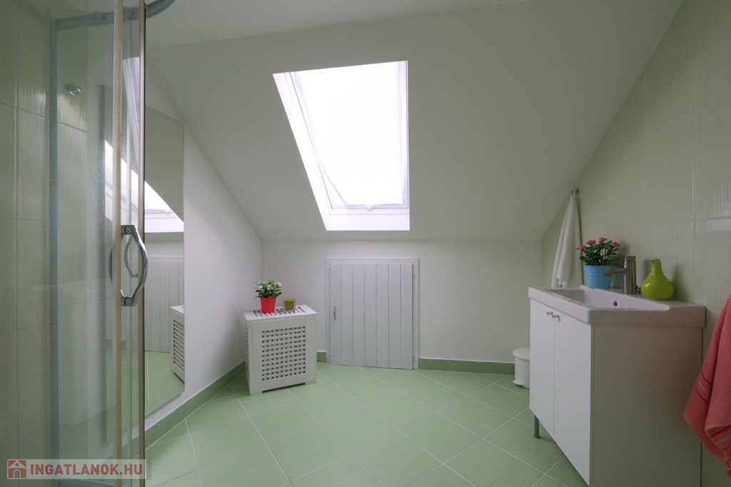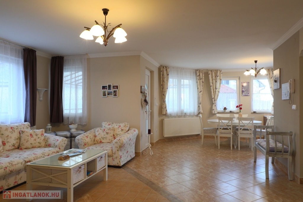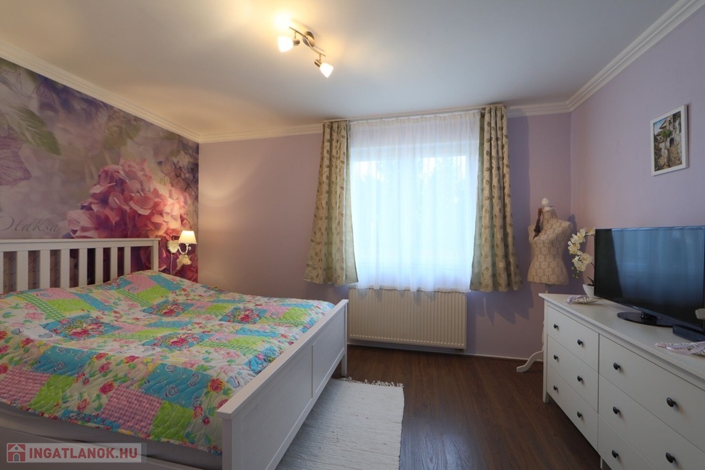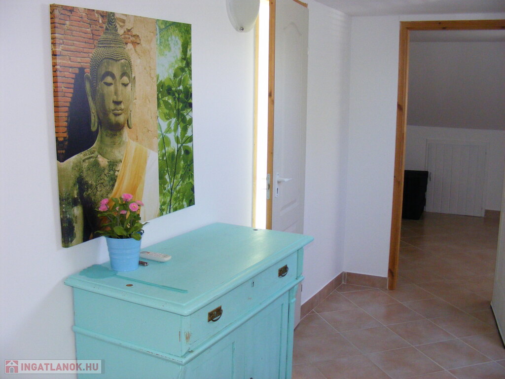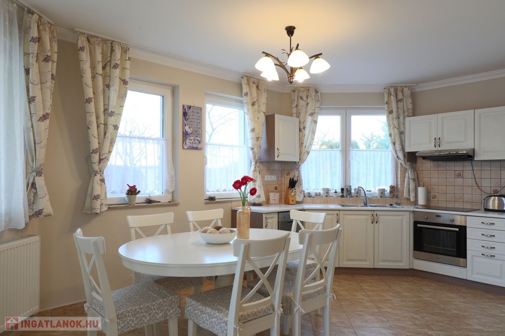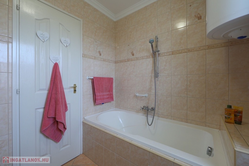 Nyaralóként használt újszerű lakóház csendes, szép környezetben Balatonkenese Öreg-hegy lábánál eladó. Központ és a strand 8-10 perc sétával elérhető. Fölszinten nappali-konyha, két hálószoba, fürdőszoba, Wc, spájz, előtér-közlekedő, és egy téliesített terasz található. A tetőtérben két hálószoba egy fürdőszoba, nagy előtér és terasz lett kialakítva. Mind a két szint klimatizált, fölszinten a fűtésről vízteres kandalló gondoskodik ami radiátorok segítségével adja a meleget. Az ingatlan teraszáról látható a Balaton és a környező hegyek. Nem full panorámás de nagyon szép és felemelő természeti látvány. Természetesen nem csak nyaralásra hanem állandó lakhatásra is kifejezetten alkalmas, hisz lakóháznak épült eleve. Ennél ideálisabb lakhelyet mely otthonunként szolgál keresve sem talál az ember.